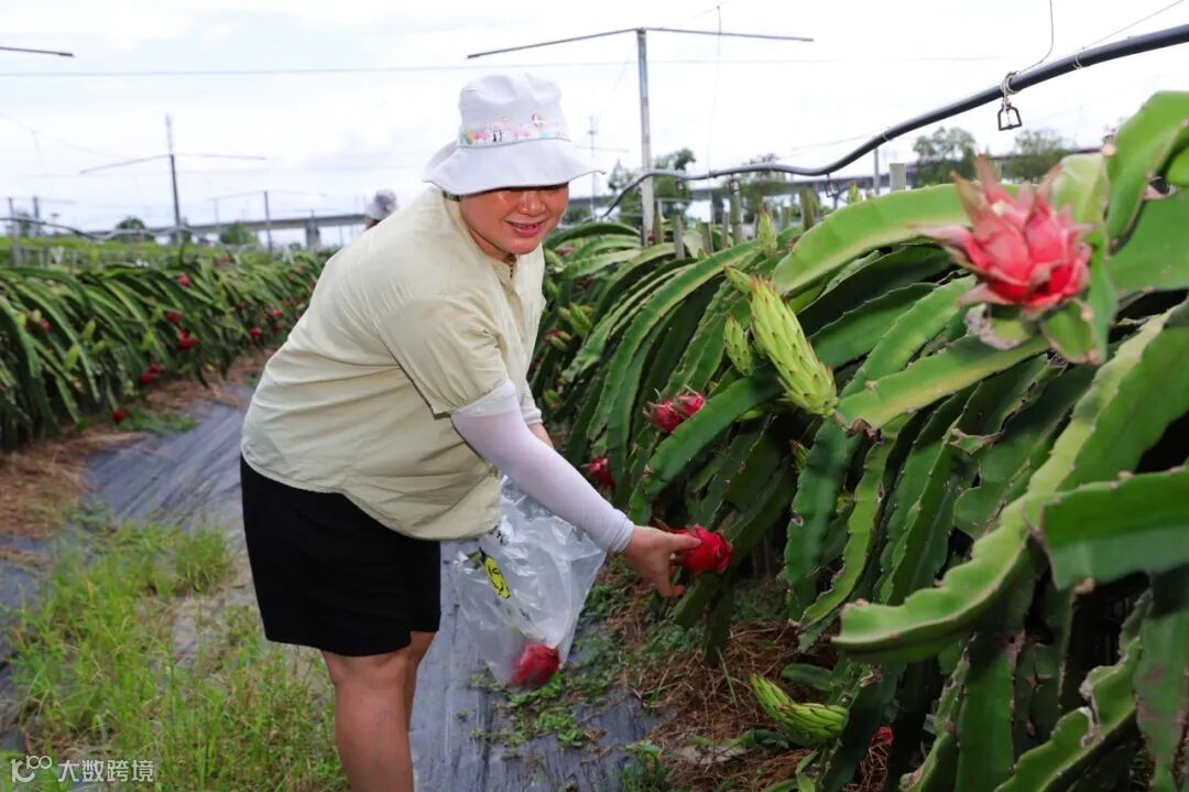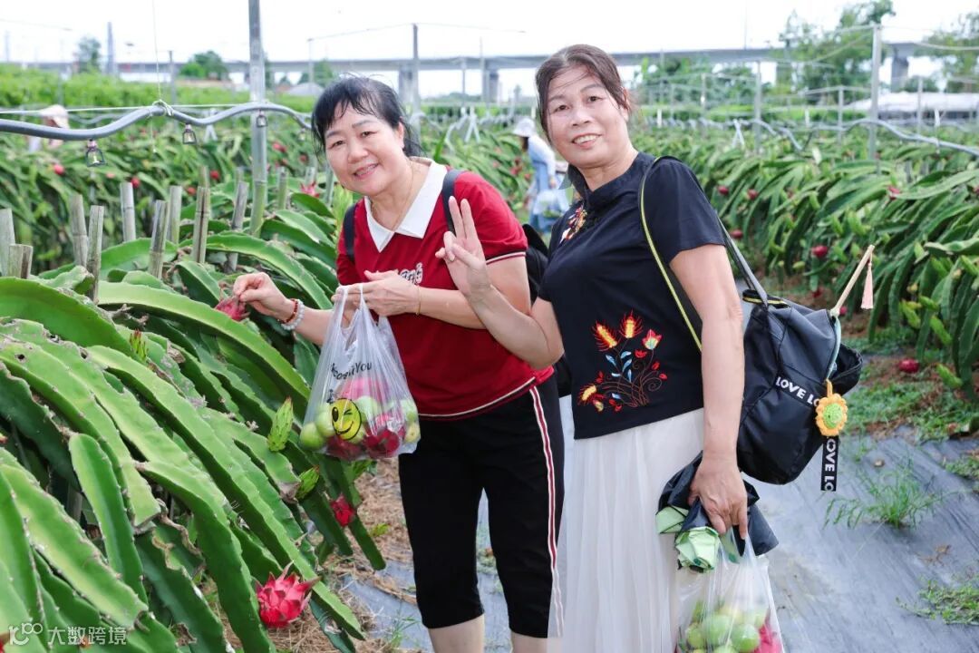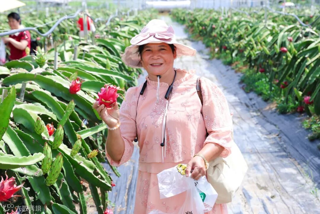 大家穿梭在田间,小心翼翼摘下黄金百香果,踮起脚尖采收高处的红心火龙果,不一会儿袋子便被果香四溢的果实填满,指尖沾着泥土与果香,丰收的喜悦溢于言表。