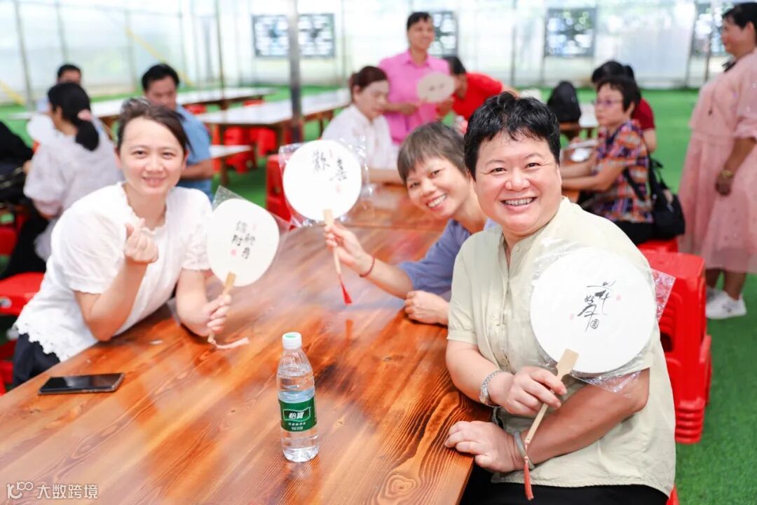 大家先将各色颜料滴入水中,颜料在水面迅速晕开,形成灵动的色彩纹路;随后根据喜好操作 —— 或轻轻旋转扇子再平稳覆于水面,让颜料随扇面转动形成螺旋花纹;或缓慢左右移动扇面,让色彩自然交融出渐变效果;也可直接将扇子垂直插入水中,让颜料完整 “印” 在扇面。