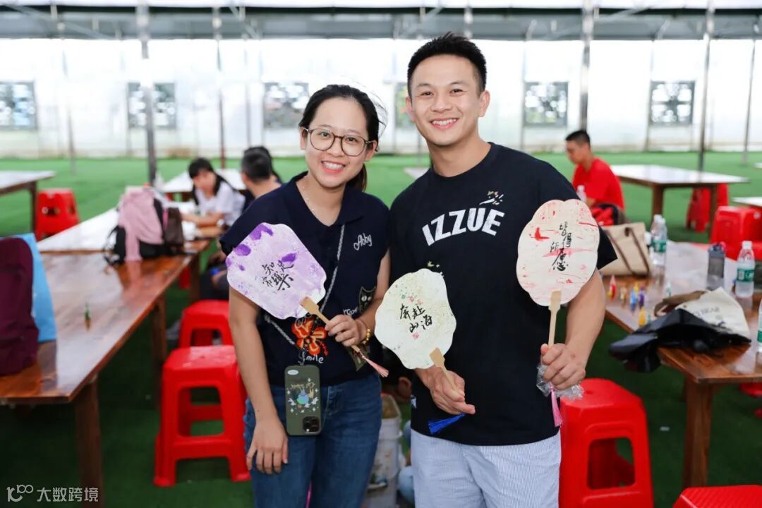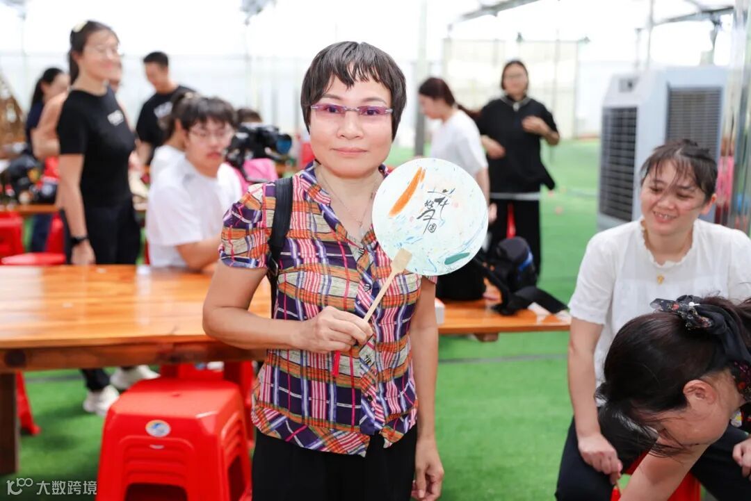 待扇面吸附满颜料后轻轻提起,原本空白的扇面瞬间布满绚烂图案,每一把扇子都独一无二,承载着大家的创意与巧思。