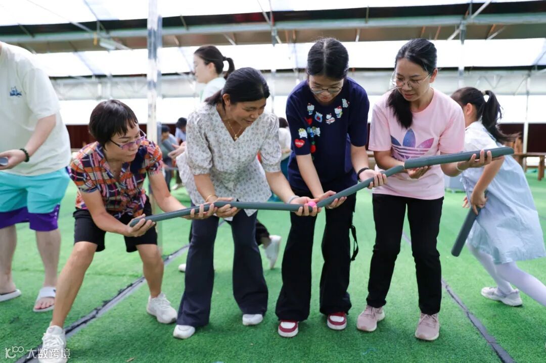 “珠行万里” 环节,众人手持 U 型槽接力运送小球,眼神专注紧盯小球轨迹,小心翼翼调整槽体角度,当小球稳稳抵达终点时,现场响起阵阵欢呼,团队协作的快乐在田园间尽情释放。