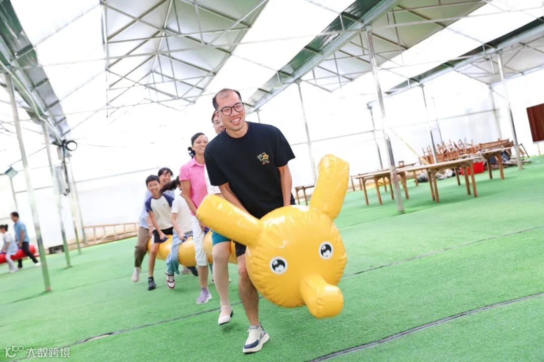 “毛毛虫赛跑” 中,大家分组踩着充气毛毛虫道具,齐声喊着口号同步迈步,起落间满是欢声笑语,彼此的默契在协作中快速升温。