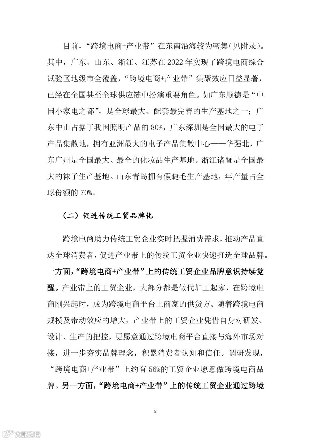 5月11日,商务部研究院电商所在2024中国跨境电商生态创新峰会上发布了《“跨境电商+产业带”高质量发展报告》。