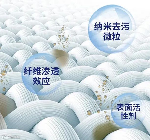 它能快速渗透,对污渍、油渍、汗渍等进行溶解和深入清洁,从而达到快速洗涤的目的!