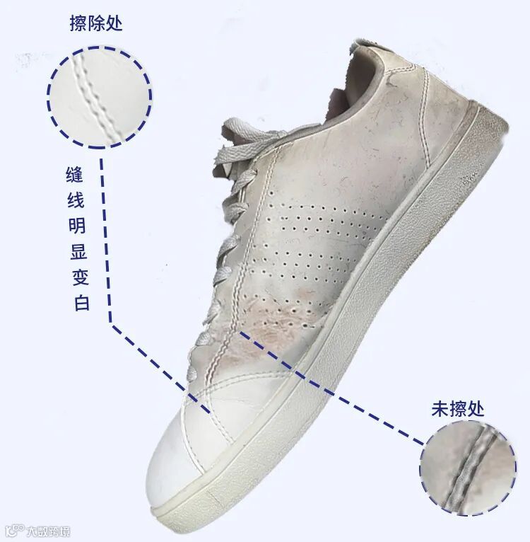 小白鞋清洁乳里的微小颗粒硬度弱于鞋面,但比污垢硬,轻松去污不伤鞋!