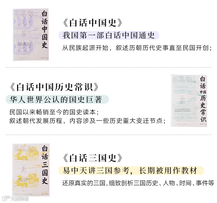 《白话中国史》《白话中国历史常识》《白话三国史》三册分别点线面讲透中国历史。
