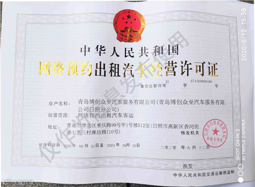 《网络预约出租汽车经营许可证》
