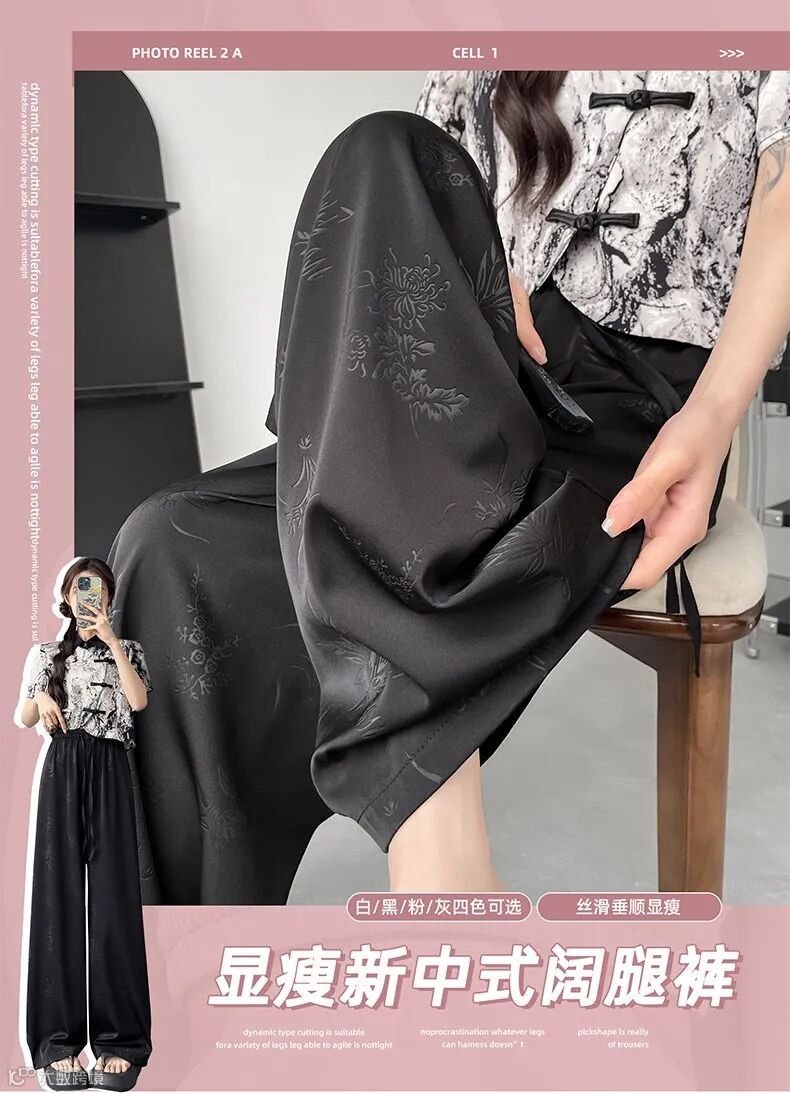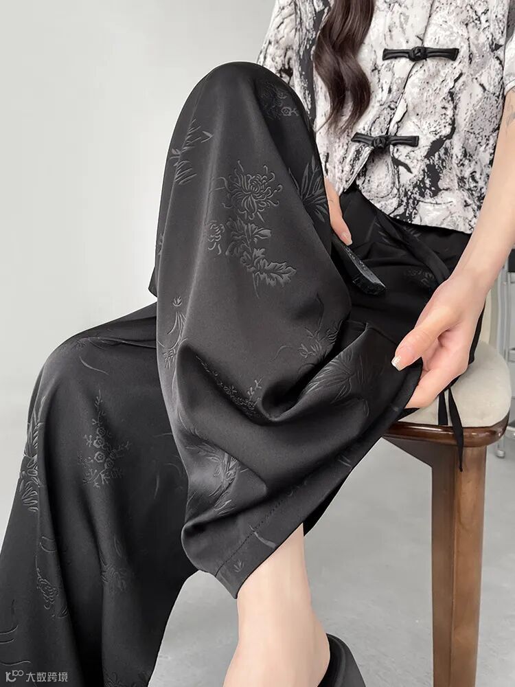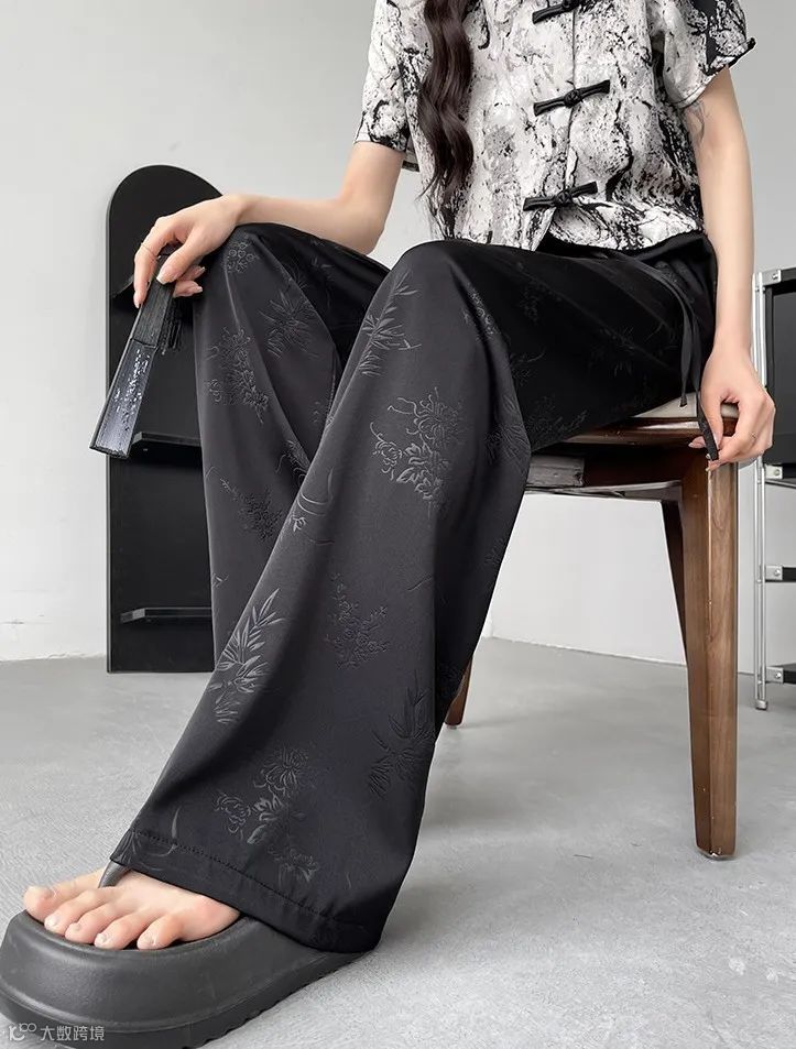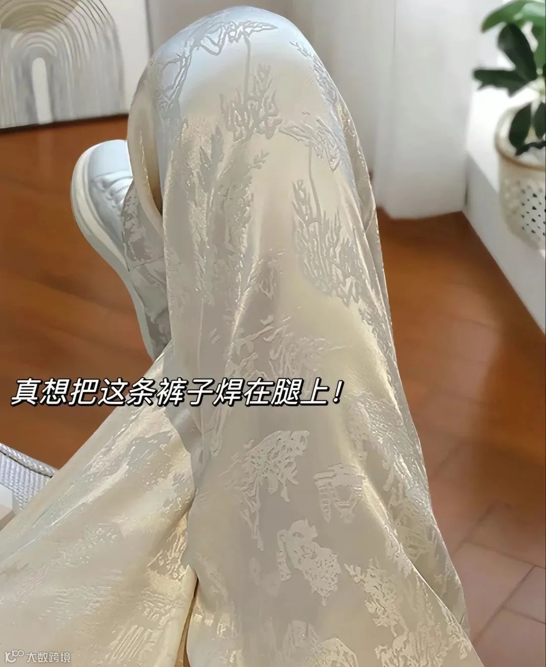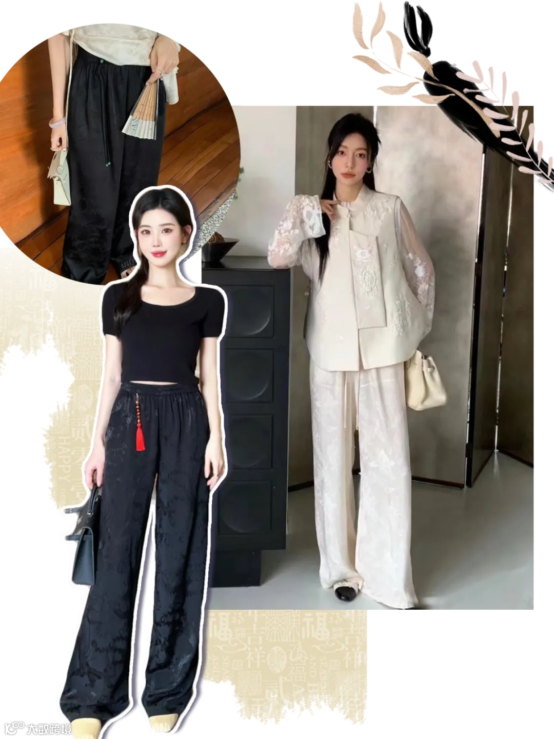 比如小编最近入手的这款新中式国风提花阔腿裤,质感拉满,好看又好穿!