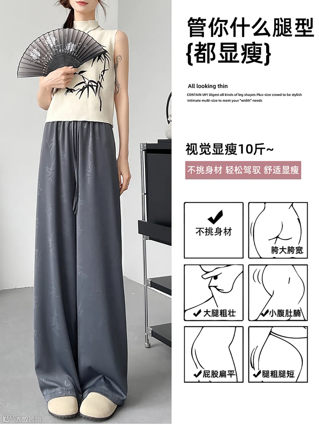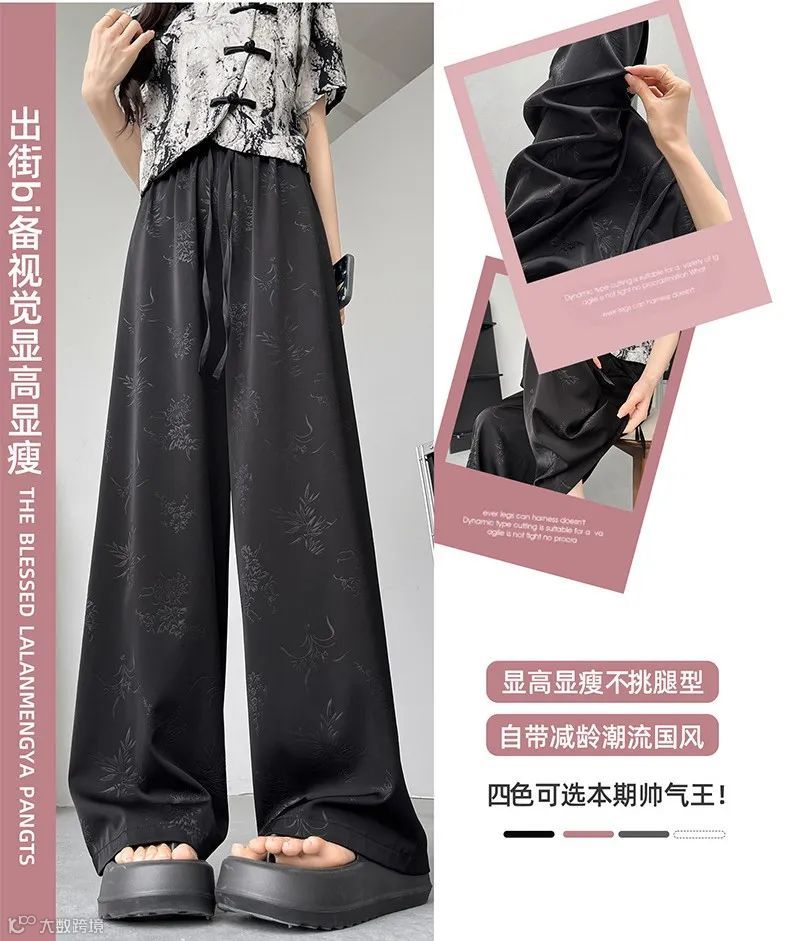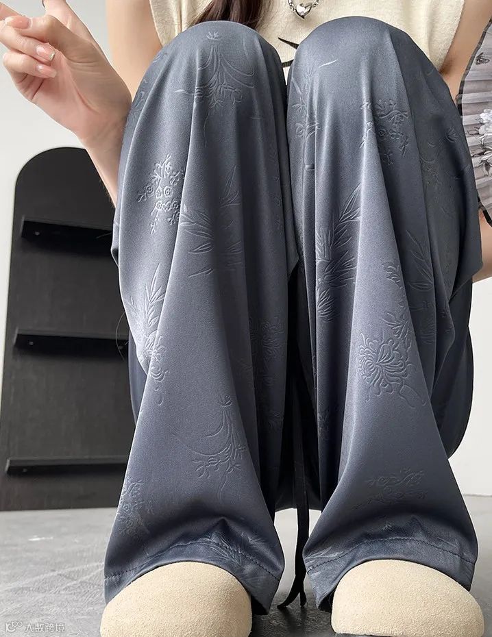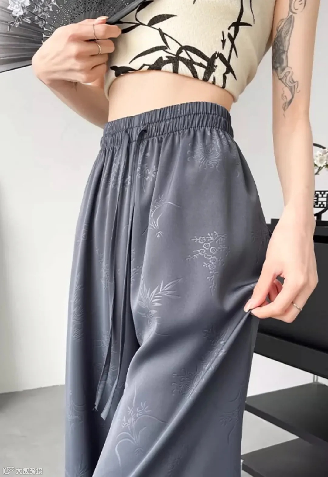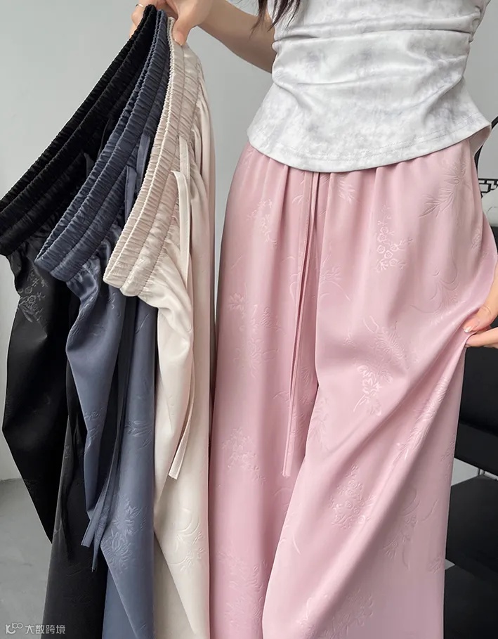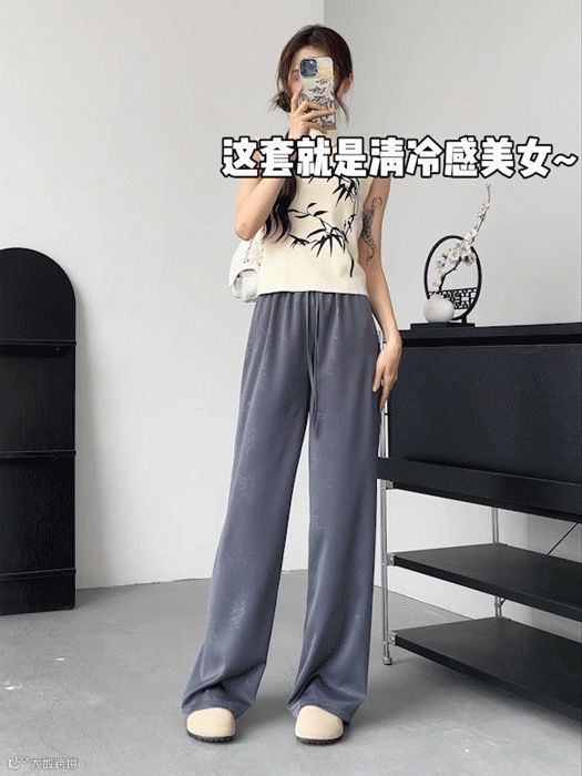 比如小编最近入手的这款新中式国风提花阔腿裤,质感拉满,好看又好穿!