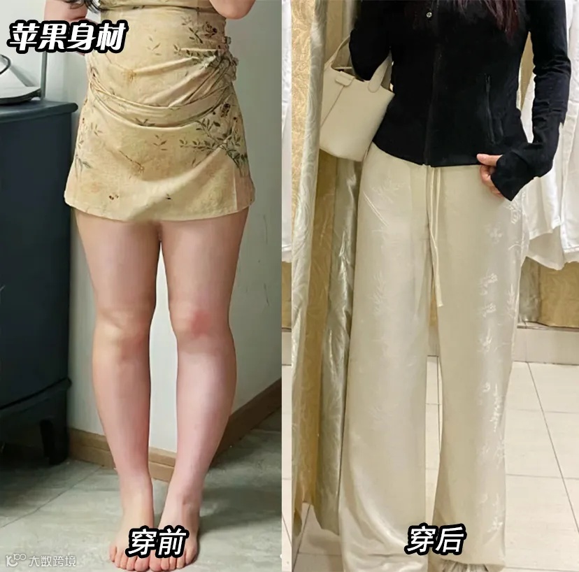阔腿版型直接将小粗腿、假胯宽、屁股大、屁股扁平、腿粗腿短统统“遮”起来。