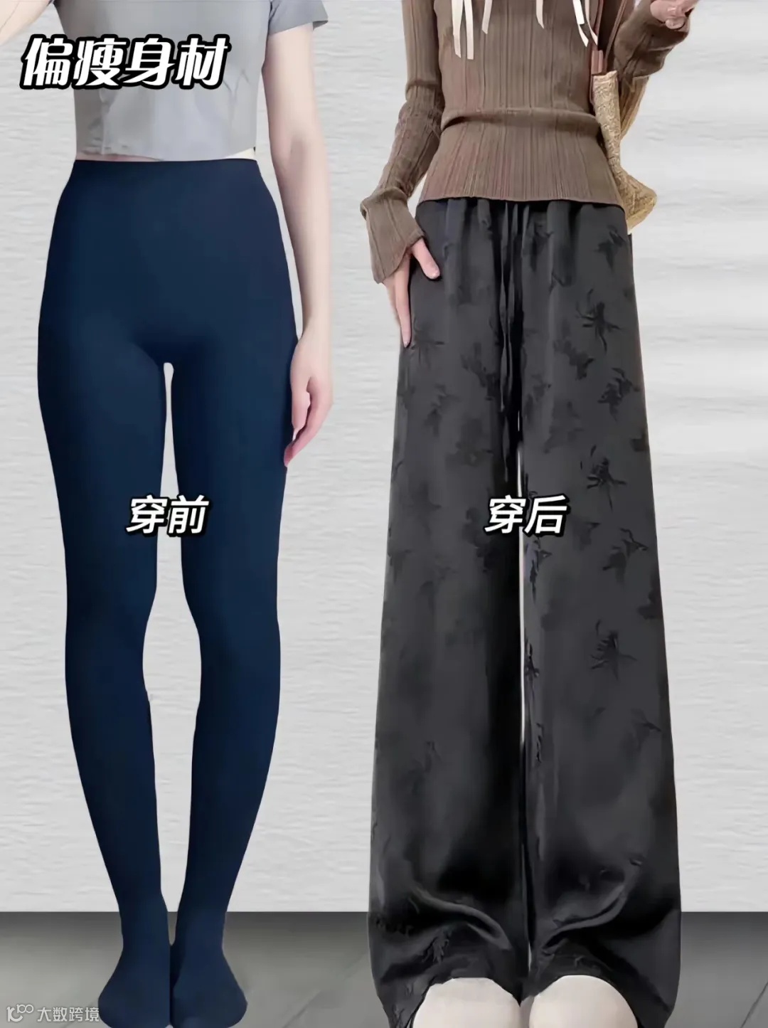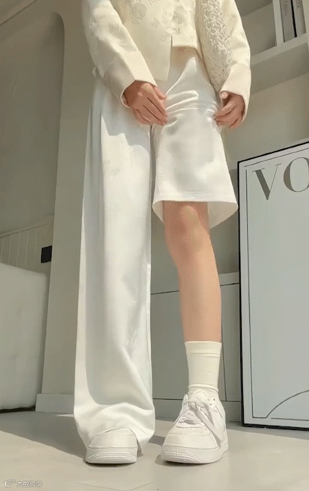 但当换上阔腿裤后,双腿变得丰满好看、又长又直,还显高不少咧!