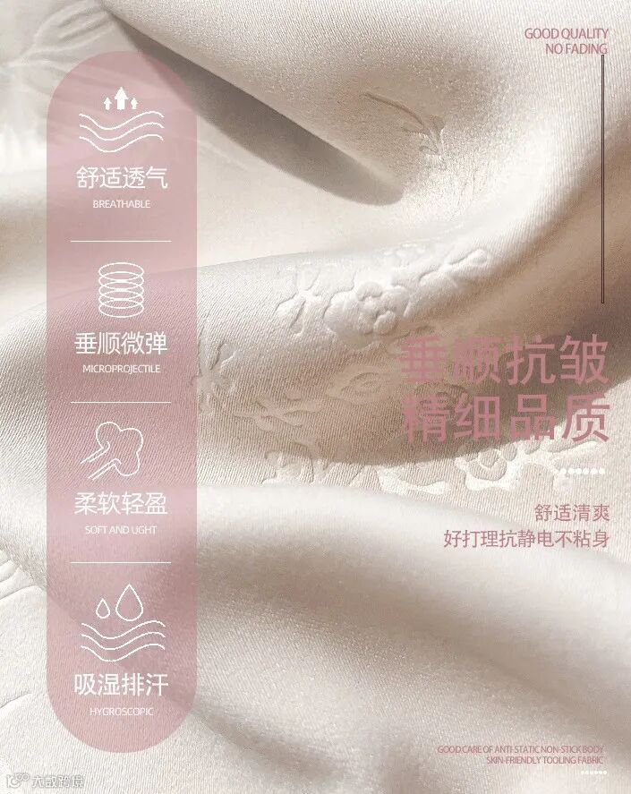 当面料滑过皮肤,好似夏日里的那一阵微风,清凉又柔和,纵享丝滑!