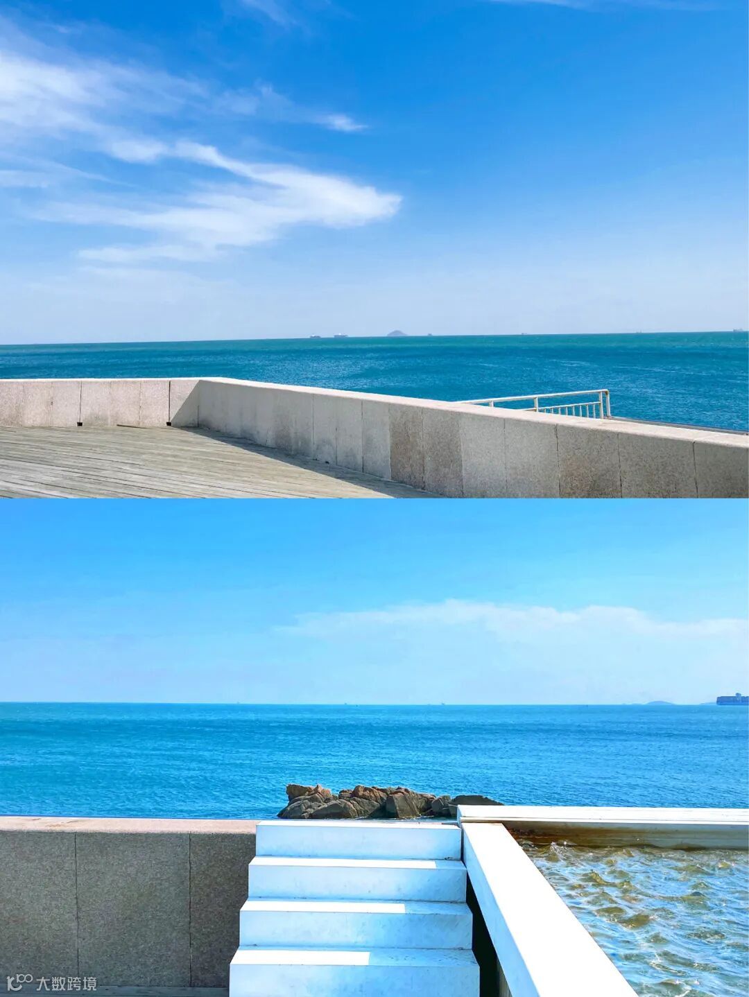 顺着情人坝往奥帆中心灯塔的反方向走,就能看到这面属于青岛的“天空之镜”,一望无际的大海,温暖的阳光,这样的青岛,谁不爱呢?