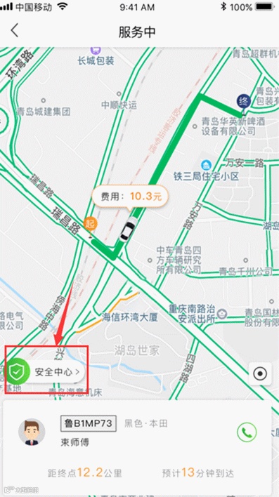 上车以后点击行程分享