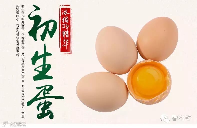 智农鲜有机农场初生蛋是小母鸡在发育至110~130天内所产的蛋,初产的鸡群产蛋率10%-30%,也就是说每只鸡平均要积蓄3~9天的营养才能产下一枚小鸡蛋,厚积而薄发,浓缩鸡蛋精华。