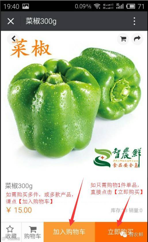 四、如购买【 菜椒300g 】,点击图片进入即可添别到【购物车】