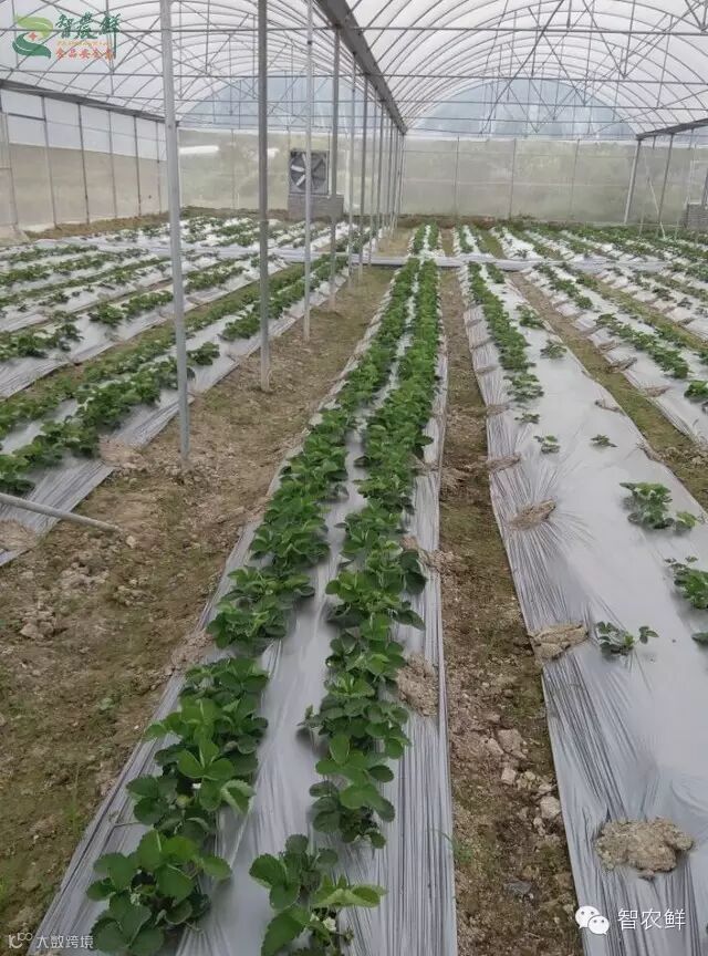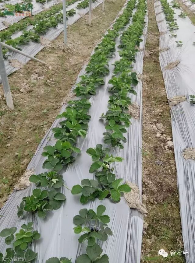 而气温的骤降,智农人也给草莓穿上了“内衣”。在土地上覆膜,保护着草莓健康成长。