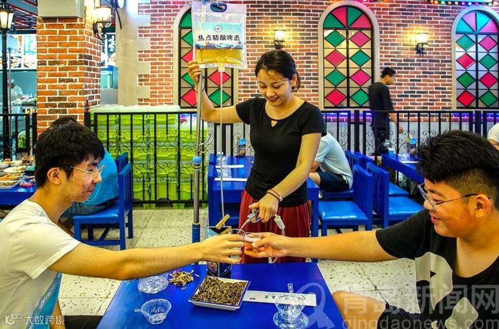 最近,一种“吊瓶啤酒”在岛城逐渐兴起,支撑杆、药液袋、输液管,甚至还有特制的“针头”,只不过,药液袋里装的是新鲜醇美的啤酒。