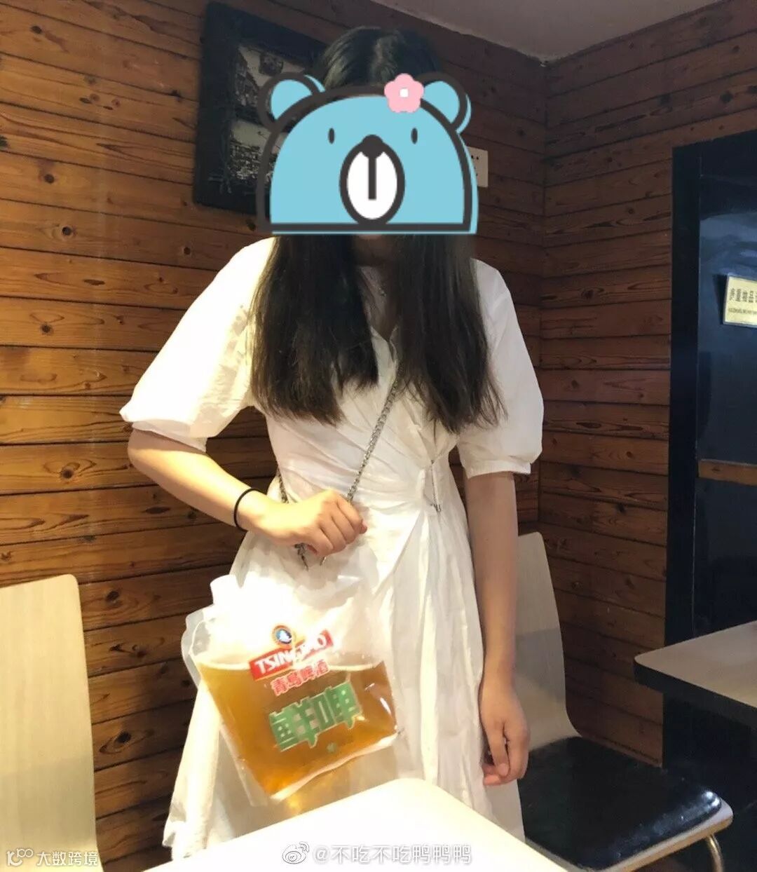 他晒出的这款“包包”很眼熟,是一个在青岛街头非常常见的——青岛啤酒袋装鲜啤包,但是当鲜啤包搭配上了链条以后,马上变身为时尚单品!