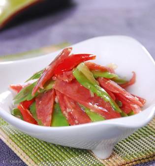 3)炒至腊肠变透明色盛出备用。