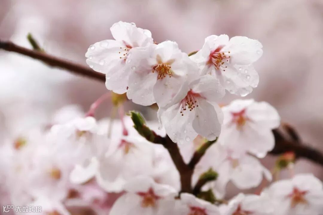 雨水洗的樱花色泽鲜亮