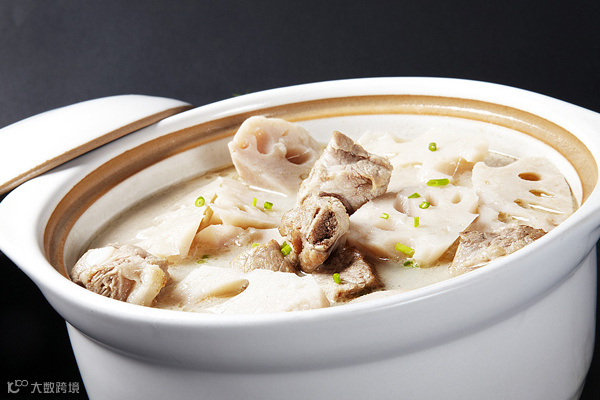 4、放入莲藕块,盖上盖子继续用中小火煲1个半小时,食用前调入盐