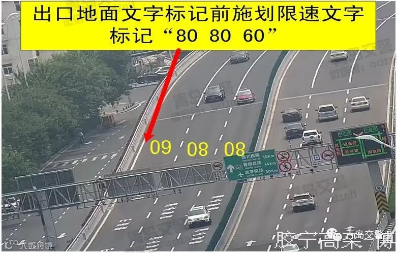 2、在山东路出口的地面文字标记前增设“80 80 60”的速度限制标记,同时在现状“山东路”出口指示标志牌位置增设限速60的限速标志,按照“禁令、指示、警告”的顺序自上而下排列,告知由外侧车道驶往山东路方向的车辆驾驶人减速行驶。