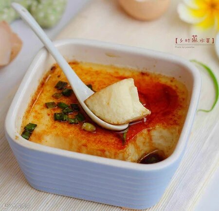 做法:1)鸭蛋二个,葱少许,浓醇汤2)蛋打碗里,葱切末3)加盐打成蛋液4)放进葱末5)调进浓醇汤6)放油和清水搅匀7)倒进盅子里8)放进蒸锅里蒸熟即可。