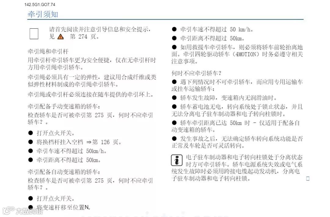 而在后者的说明书上,确实有拖车时速和拖车距离不得超过50公里的警示。但仔细看看,手动挡车型同样也有这样的限制,这说明即使拖车可能伤车,也与自动挡无关。