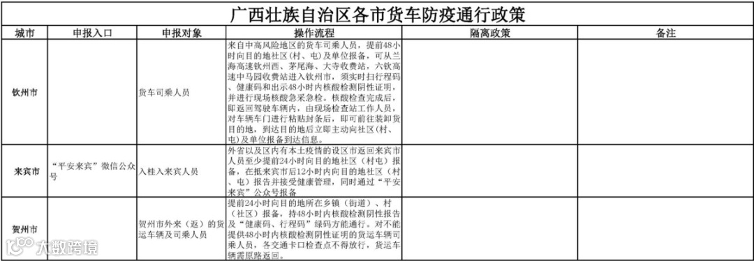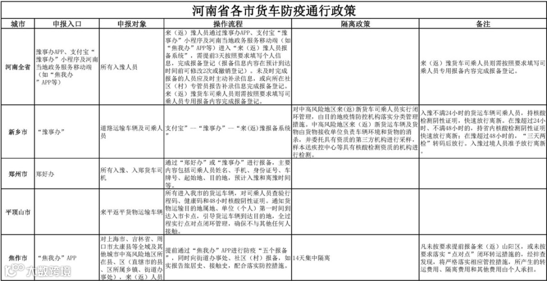 各地货车出入政策汇总