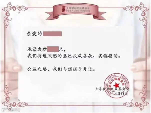 每一笔都会生成官方捐赠证书,