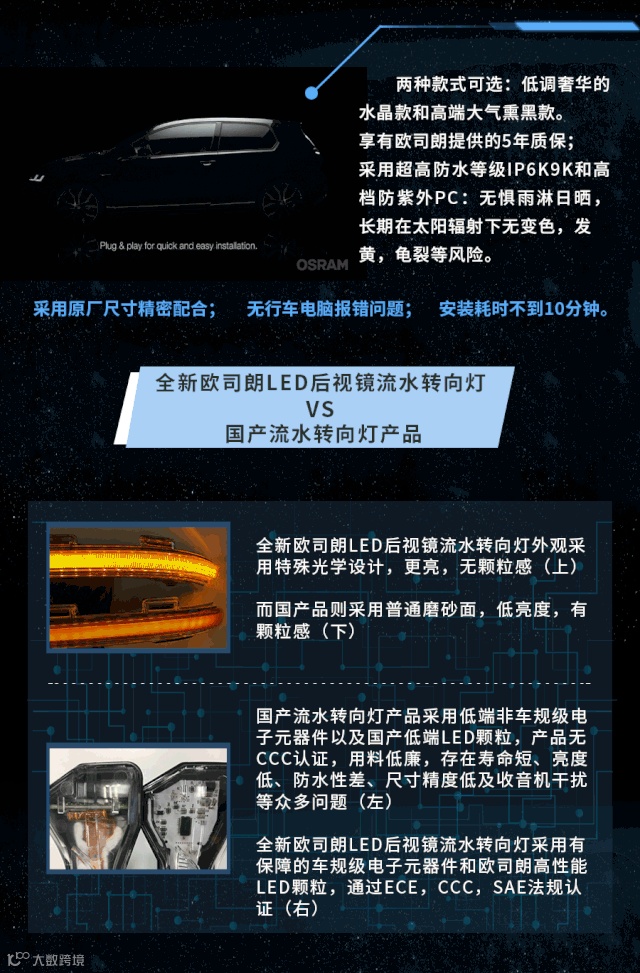 2)欧司朗后视镜流水转向灯车型适配表