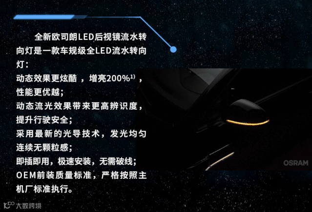 欧司朗全新款车规级LED后视镜流水转向灯