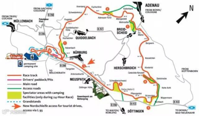 作为世界最著名的赛道之一,纽博格林赛道建在山林之中。在这里,人类的建筑与大自然达到了完美的统一和谐。然而,复杂的弯道与高低起伏的地形,大约33个左弯、40个右弯,对错误几乎零容忍的极窄缓冲区,也使其成为了最危险、最具挑战性的赛道。