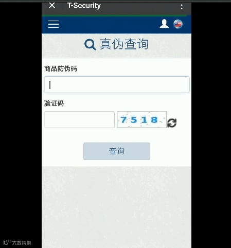 ▲ 进入【防伪验证系统】只需填写【商品防伪码】以及验证码,即可马上辨真伪!