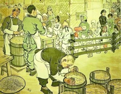 旧时慈善施粥图