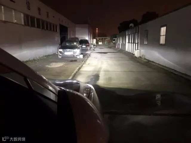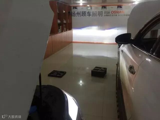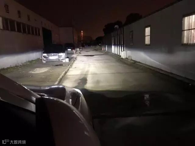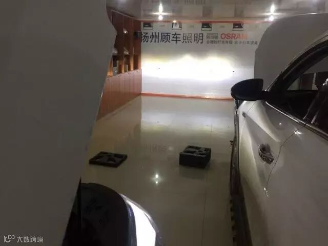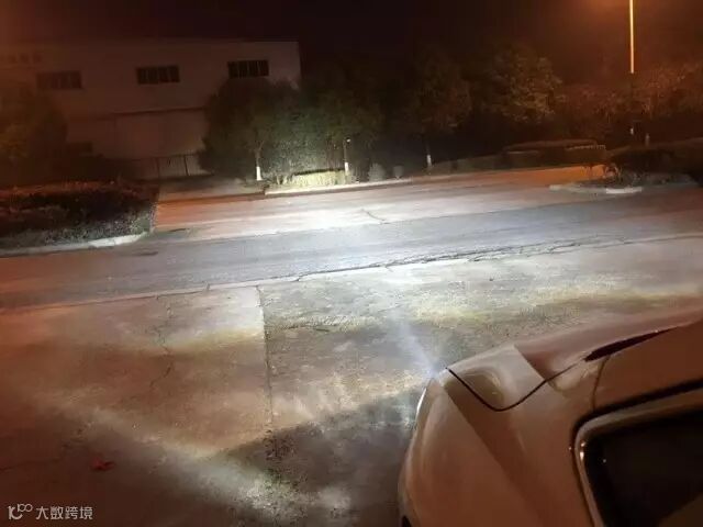 近光打在测光墙上可以看见,有非常清晰的蓝色边缘截止线,灯形很正。远光在店内测试不出完整的效果,但是的确是又白又亮,比改签好了太多。