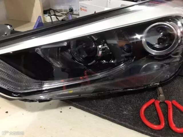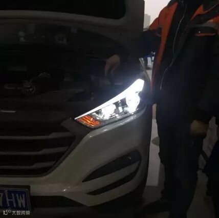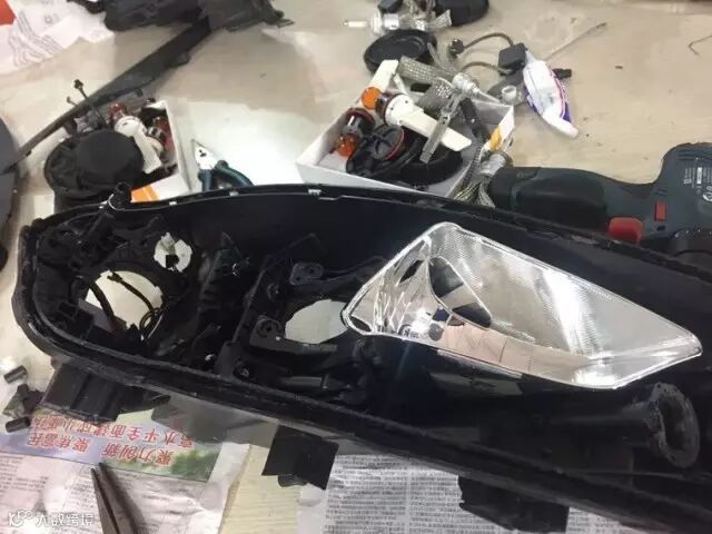 拆前杠皮 加盖防护 取下大灯,操作熟练动作一气呵成→开灯除胶后,师傅们在仔细地打磨灯罩套件 切割灯碗→一系列装灯、调光的专业操作后就来到了测试的环节。
