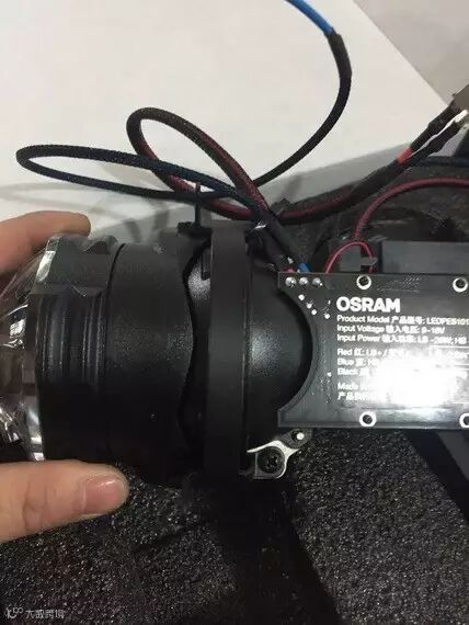 魄晓者LED双光透镜 LED本身的功率相对于氙气灯和卤素灯都小,别看他这么大的体格,还真不如卤素灯的功率高呢,LED的核心莫过于就是发光芯片组了,欧司朗的产品可都是供给奔驰宝马奥迪厂家的 产品质量和效果那是相当有保证。这款LED双光透镜的设计也是十分有讲究的,采用双曲面镜,告别了传统透镜的机械变光控制规避了机械故障率,使近远光可是实现无延迟自由变换。在散热方面,采用了车用级独立风扇,满足苛刻环境下可以正常工作。