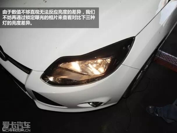 将用试验车新福克斯安装第三代夜行者,与原厂车灯近远光灯对比,通过专业仪器测量流明体现产品差异。