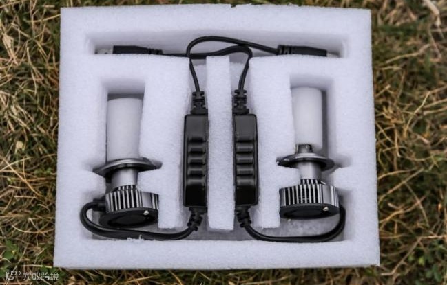 一对装的LED车灯用珍珠泡棉做了很好的防护。