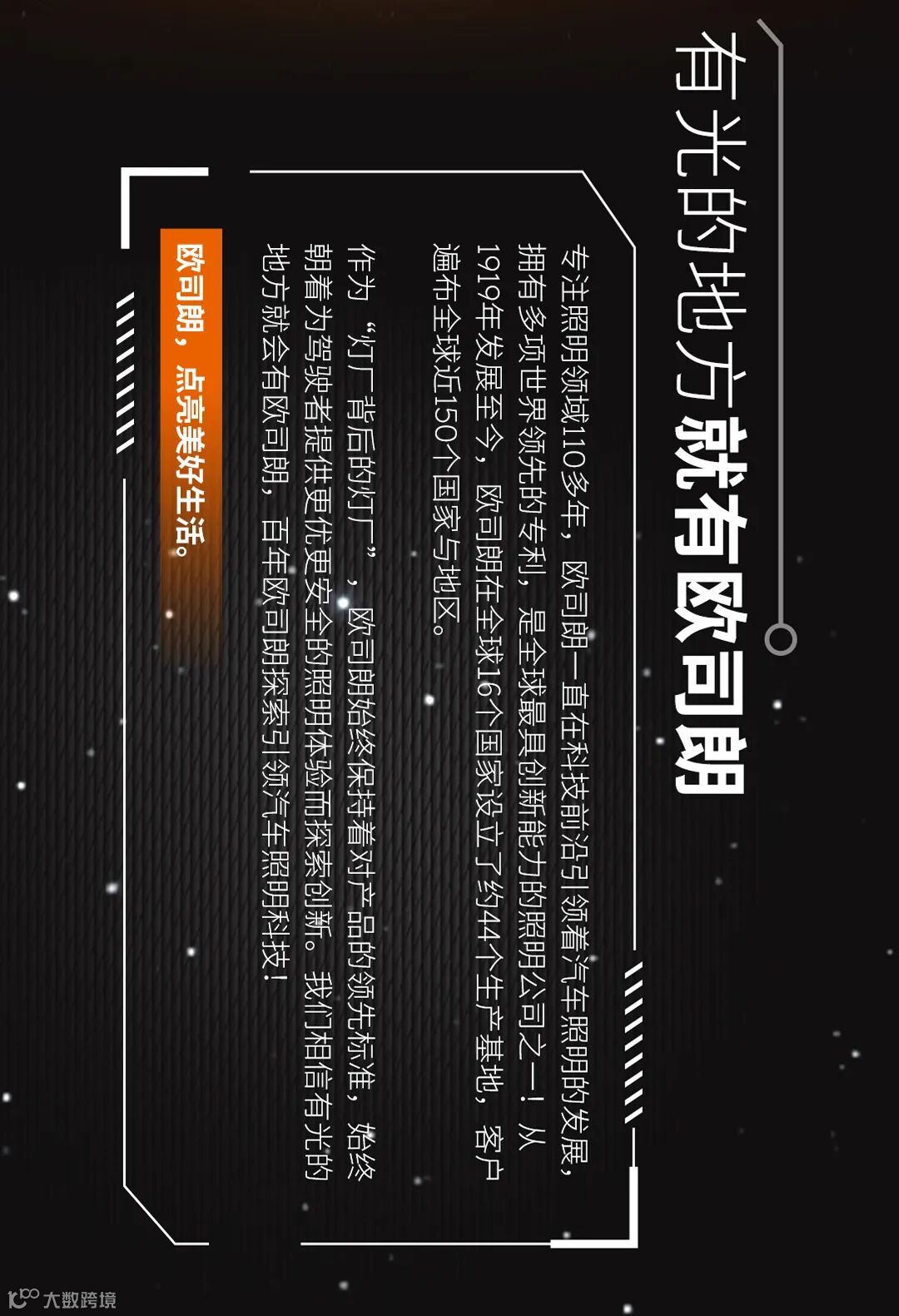 欧司朗总部设于德国慕尼黑,是一家拥有超过110年品牌历史的高科技公司。欧司朗的创新科技不但为全世界的人们满足照明需求,并不断致力于改善人们的沟通、出行、工作和生活。