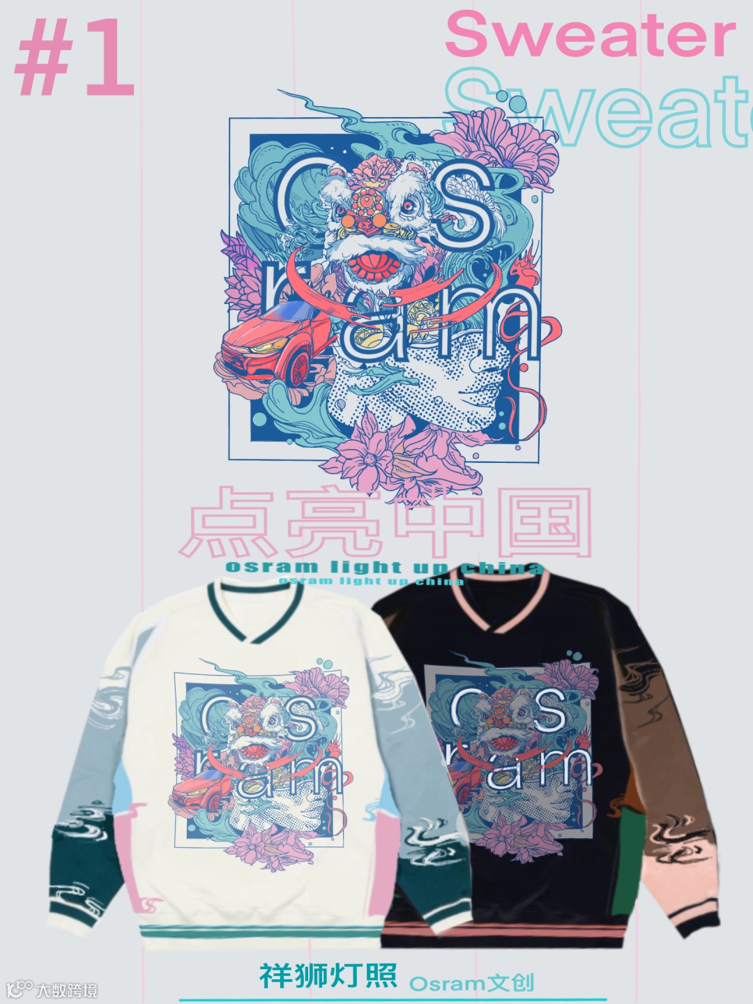 在本次欧司朗文创产品设计中,选取贵公司高科技照明技术为基础,提取,归纳,加以融合中国风元素而进行创作,新提取出的颜色和样式更加符合当代审美潮流,设计出了一系列卫衣,短袖,马克杯,笔记本等衍生产品,表达了照明技术的作用及中国传统文化的传承与创新,利于欧司朗这一品牌在国内市场的发展。