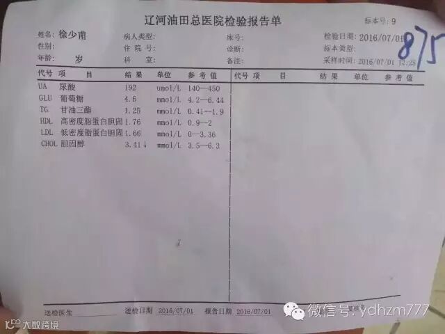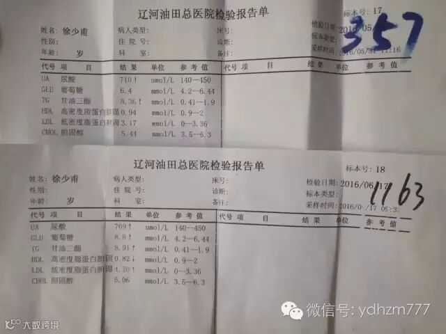 调理的一位36岁痛风患者,两年没上班,脚后跟不敢沾地,坚持喝一个月天贝葛根黑豆浆尿酸值从710降到192,看图三化验单对比,调理半个月的尿酸值仅仅降了1,而且个别患者会出现关节肿痛病情加重现象,不要担心,因为此配方完全是五谷纯食物没有任何副作用,一定要坚持下去!完整的食物是最好的药物!