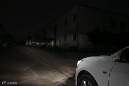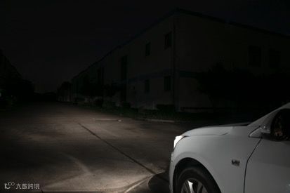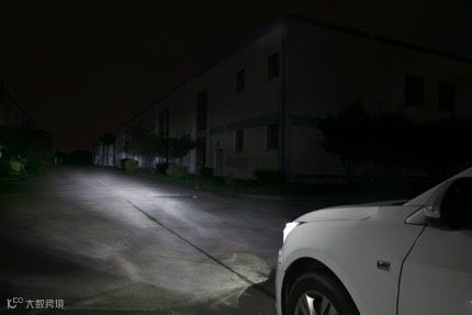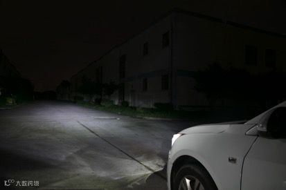 ▲打墙近光。在结构不变只更换灯泡的情况下,迅亮者LED的亮度明显提升,照射范围也比卤素灯更广。