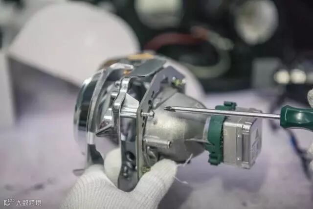 ▲开灯,取下氙气透镜,师傅不但改灯技艺高超,做起慢工来也是一丝不苟。