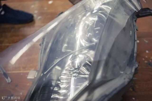 ▲将密封起来的大灯加热后让胶体融化变软,便于分离灯罩。