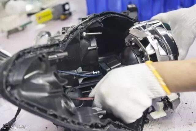 ▲改灯的师傅非常注重细节,耐心对待改灯工艺,一定要把每一个螺丝和卡口拆卸到位才能顺利安全的取出大灯!