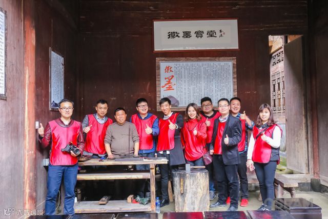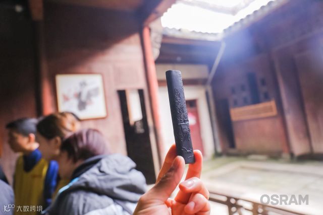 放下行李,欧司朗一行就去参观了徽州非物质文化遗产展示区,在当地艺术大师的解说下体验了拥有“徽州七绝”之称的徽墨和撕纸艺术。