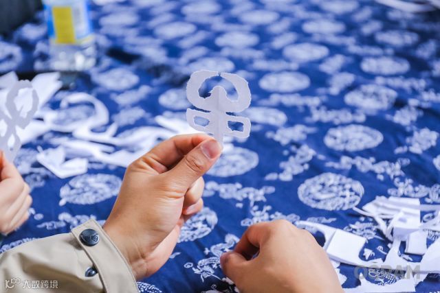 “撕纸成书”是徽州撕纸艺术的独门绝技,与毛笔书法作品异曲同工。“教大家撕一个字吧“,话音未落大师三两下就将一张纸变成了一个字,啧啧称奇,但之后手把手教学下,大家都完成了“一字之撕”。