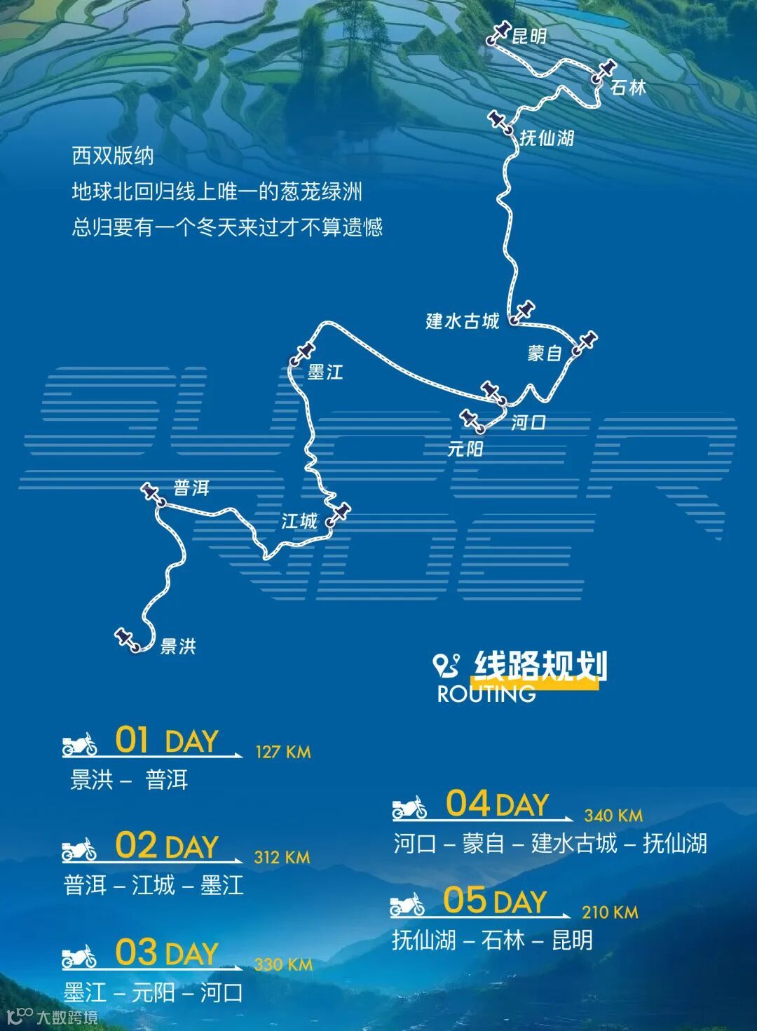 我们即将开启一场从西双版纳景洪市出发,途经普洱、墨江、河口,再返回蒙自、建水古城、抚仙湖,最终抵达昆明的摩旅骑行团线,诚邀热爱摩旅的你加入!